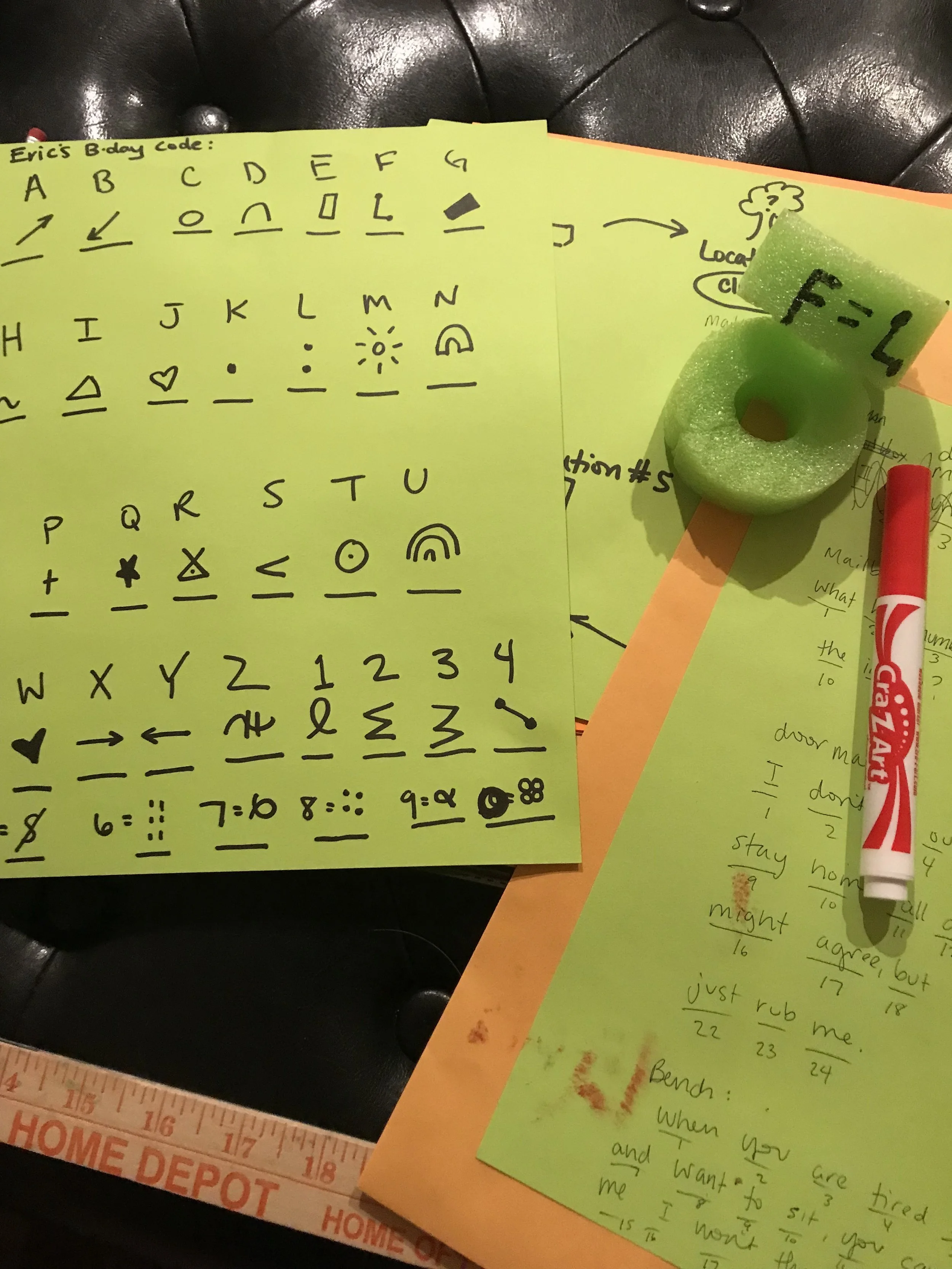 Back by popular demand, we were requested to make another scavenger hunt for our cousins, this time, for a water themed birthday! I put the key on a pool noodle and cut up the noodle into slices, so the kids had to find and assemble them for the code and the first clue. I made this one extra tough, but it included a water ballon fight!